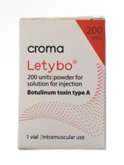 letybo is an acetylcholine release inhibitor and a neuromuscular blocking agent indicated for the temporary improvement in the appearance of moderate to severe glabellar lines associated with corrugator and/or procerus muscle activity in adult patients. 200iu pack